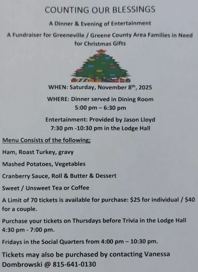 Copyright © 2016-2022 Greeneville Moose #692 - All Rights Reserved. IMPORTANT NOTICE: The Moose is a private organization. All activities and events referred to on this Web site and in The Moose newsletters are available to active members and their qualified guests only. This Web site is for informational purposes with proprietary information intended for members only. General information is available to the public at large but should not be construed to be a solicitation for membership. This Web site is an initiative of Greeneville Moose Lodge No. 692 and is not sanctioned by Moose International or any subsidiary thereof. All logos, trademarks and service marks pertaining to the Moose and/or its programs or degrees are copyrighted © by Moose International, Inc., Mooseheart, Illinois.